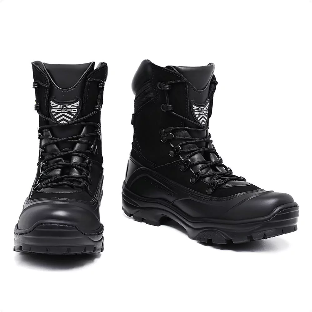Bota Militar Tática Coturno Acero Couro Nobuck Preto com CA TPCA90P