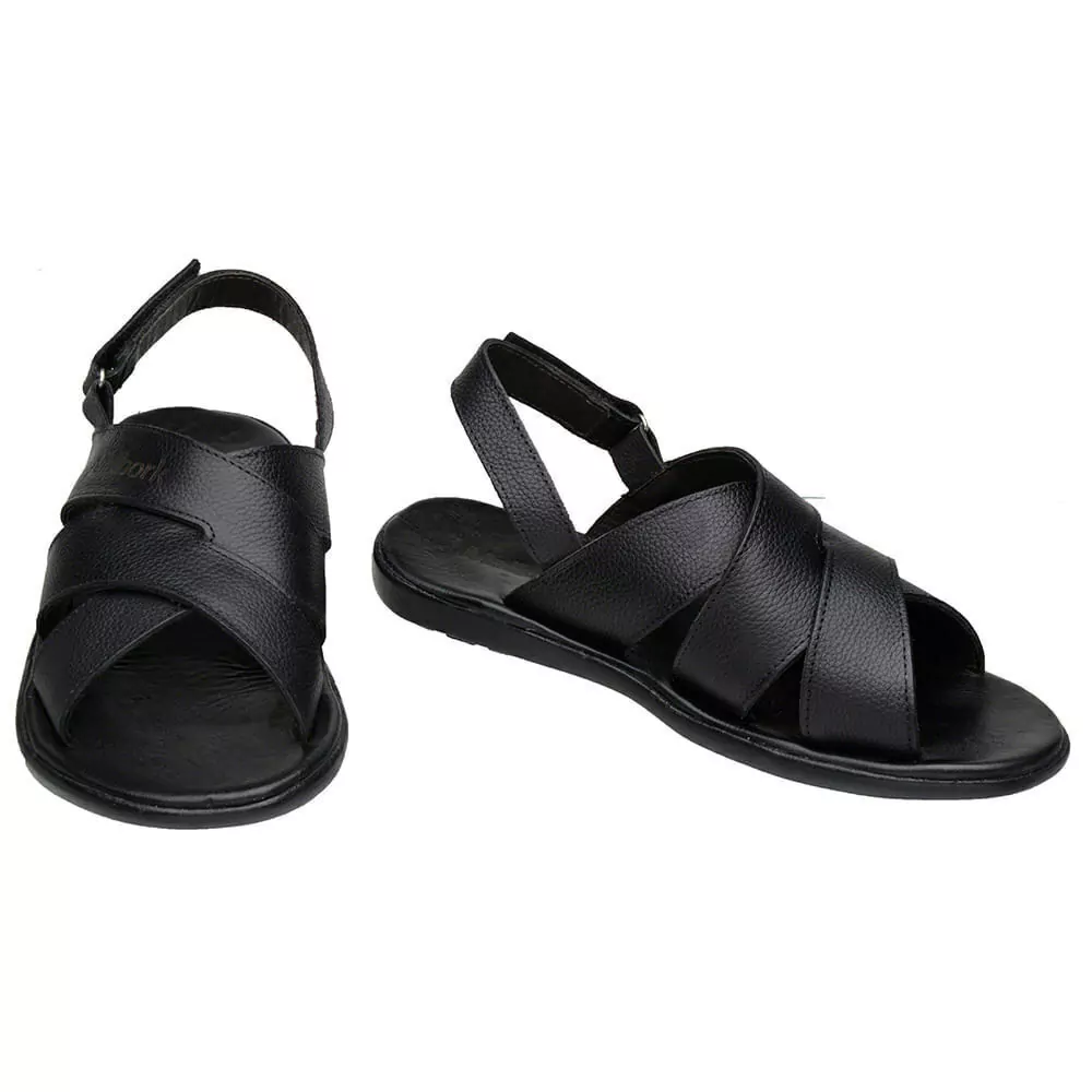 Sandália De Couro Preto Com Solado Em Borracha Conforto 495