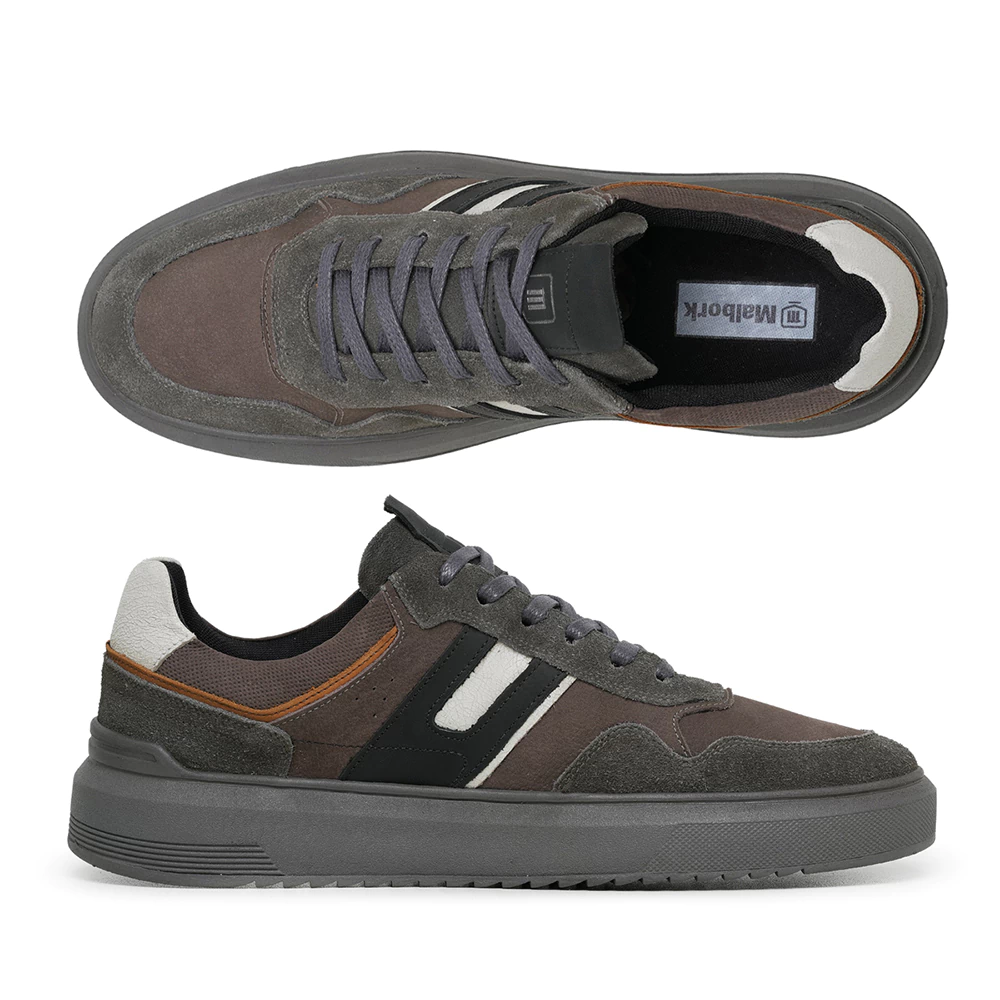 O Tênis Malbork Cinza e Marrom com Solado de Borracha é a escolha perfeita para quem busca praticidade no dia a dia sem abrir mão do visual moderno. Com um design clean e urbano, ele combina facilmente com diferentes estilos — do casual ao esportivo.